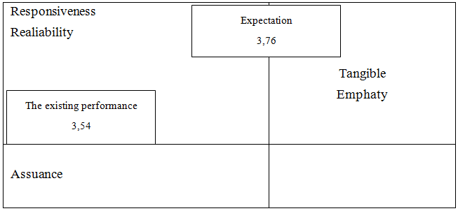 The highest existing performance scores on Tangible and Empathy variables. Thus it was concluded that aspects of the building, employee uniforms and all tangible aspects were considered very good by consumers. While the variable Assurance gets the existing performance score is the smallest (but still higher than consumer expectations). This shows that the guarantee aspects are considered imperfect, even though they are still in the good category. Mapping each variable is visualized in the following Figure 2.