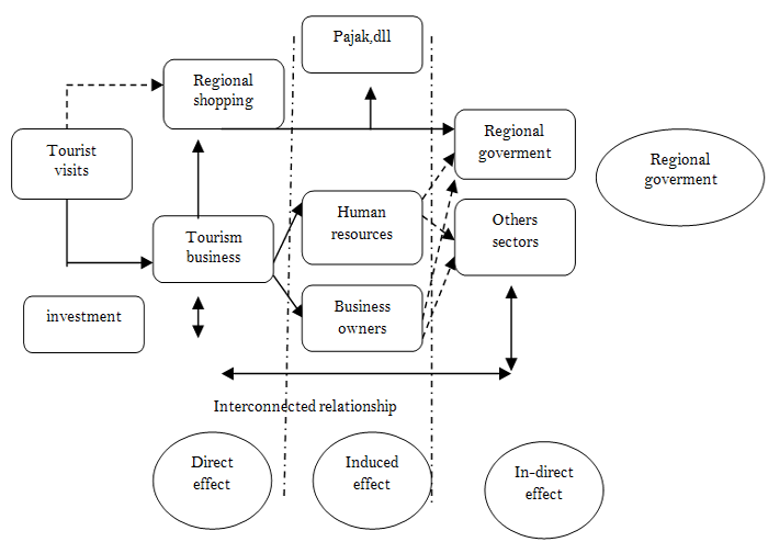 In general, the concept of sustainable development consists of four dimensions, namely ecology, socio-economic-culture, socio-politics, and legal institutions. Sustainable development in Java Province is basically a development strategy that provides a kind of threshold at the level of utilization of natural ecosystems and natural resources in it. This threshold is not absolute, but it is a flexible boundary that depends on technological and socio-economic conditions related to the use of natural resources, and the ability of the biosphere to accept the effects of human activities. In other words, sustainable development by exploiting natural ecosystems in such a way that their functional capacity is beneficial for human life (Rizal, 2018) can be seen in the Figure 5, the impact of tourist visits on the regional economy.