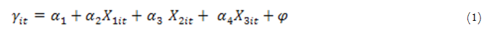 Pooled ordinal least square (OLS): This method uses the data variables (T) observation Number (it) and the (OLS) parameter model as follow: