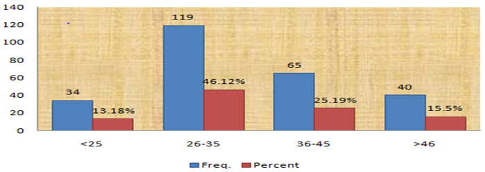 0 = If <25, 1= If 26-35, 2 = If 36-45, 3 = If > 46 years old. |