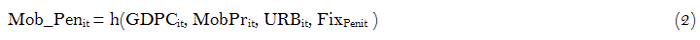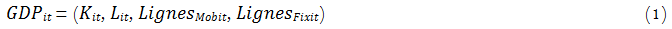 The rest of the article is divided into four main sections. The first covers the stylized facts on the telecommunications sector in ECOWAS countries, namely the penetration rates of fixed and mobile telephony and high-speed Internet access. The second concerns previous research on the issue of telecommunications infrastructure. The third section deals with the estimation method adopted and the main results. The last section is devoted to the conclusion.