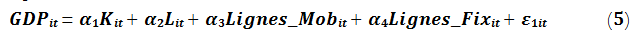 Telecom technology has spread rapidly in the sense that in nations in Sub-Saharan Africa, there has been a shift from second-generation mobile phone systems to a more advanced generation. In ECOWAS countries, we are now in the third and fourth generation of technology. However, Garbacz and Thompson (2007) highlighted the fact that telecommunications in developing countries continue to be poor. This result essentially raises the issue of investment in telecommunications infrastructure and the influence of infrastructure on economic growth (or per capita income), while keeping in mind the great potential of the African continent as a telecommunications market.