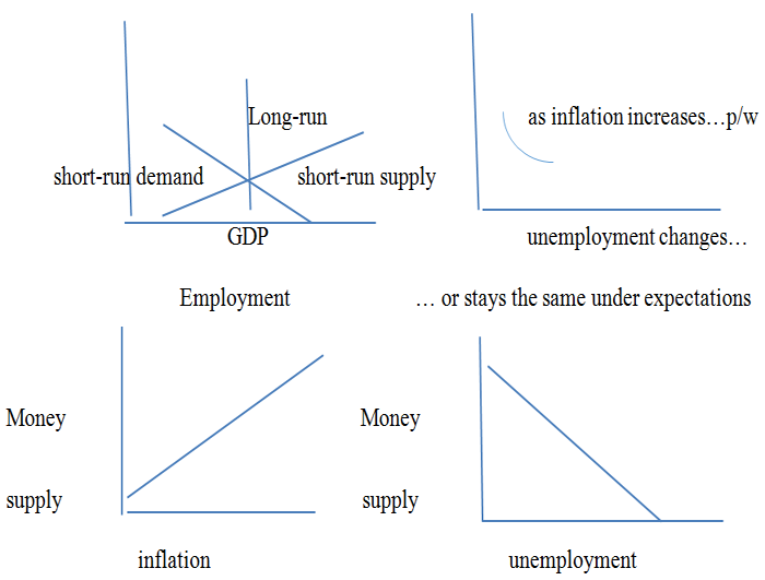 Most specifically, “rational expectations” came about in the 1970s by economists looking for a way to return economics to its laissez faire origins. Business leaders, theoretically reducing risk, focus on possible wage and price changes in the future. Unemployment and growth self-adjust and do not change as much as the price-wage element of the Phillips Curve, created by British economist A.W. Phillips in 1958. However, during the “Great Recession,” a global event following the 2008 U.S. financial crisis, the largest change for developed countries were “topsy-turvy” swings in Gross Domestic Product (GDP), such as -1.2% in Q1 of 2013 to 5% in the Q3 of 2014 in the United States (Statista, 2017) . Unemployment rates swung too, from 9.4% in Oct., 2010, to 9.8% in Nov., to 9.3% in Dec., and from 7.7% in Nov. 2012, to 8% in Jan. 2013 and 7.5% in May 2013 (United States Labor, 2017b